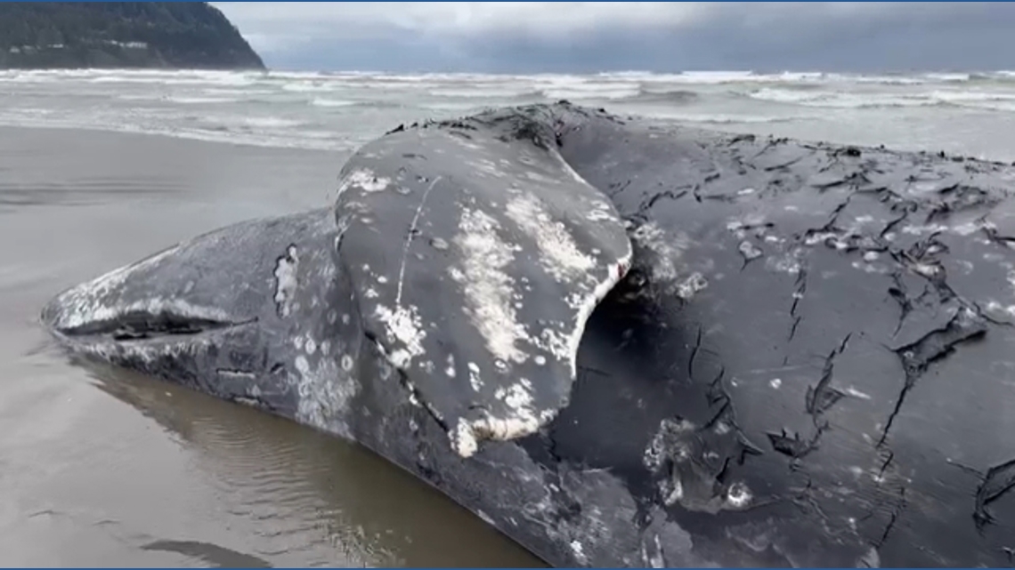 Seaside Aquarium reports 40-foot adult Gray whale found dead on Seaside Beach